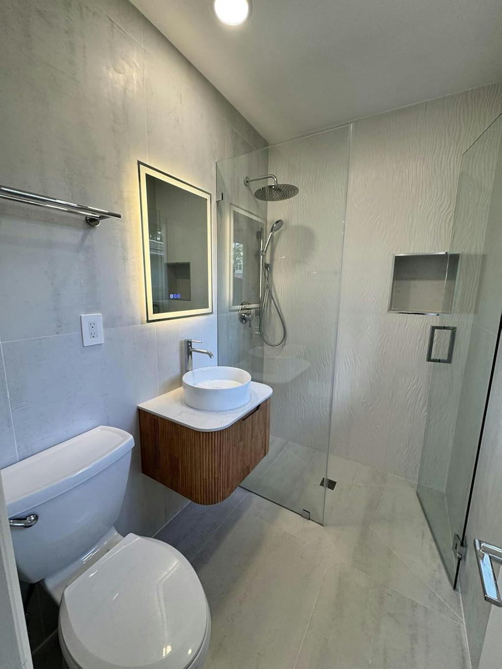 Warm Natural Oak Texture: Features a realistic wood grain finish that adds organic warmth and a high-end, contemporary aesthetic to any home renovation or master bath upgrade.