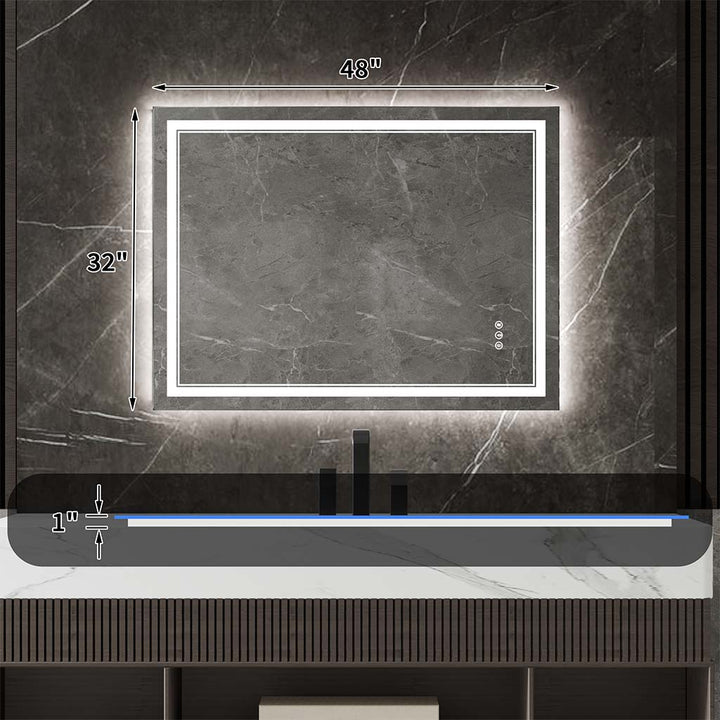 Our LED mirror for the bathroom comes with an anti-fog feature, it creates the perfect atmosphere for any occasion. With one-touch power memory and easy installation, it's convenient at your fingertips. The 5mm tempered glass and captivating illumination add a touch of elegance. Experience luxury and efficiency with automatic fog removal and ETL certification. Upgrade your routine and transform your space with our irresistible LED Mirror Light.