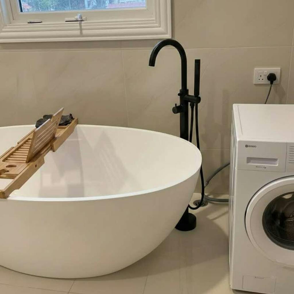Designed for contemporary soaking tubs and spa-style bathing experiences, this freestanding tub filler delivers a perfect balance of modern design, safety, and long-lasting performance. Crafted from premium 316 stainless steel, it offers exceptional resistance to corrosion, rust, and moisture, making it suitable for humid bathrooms as well as outdoor spa installations. The built-in thermostatic valve provides precise temperature control, helping maintain a consistent, comfortable water temperature and protecting against sudden pressure or temperature changes. A fully rotatable 360° swivel spout allows flexible positioning for effortless tub filling, while the single-function hand shower offers targeted rinsing for added convenience during bathing or cleaning. The high-performance tub spout delivers an impressive flow rate of up to 3.84 GPM at 0.55 MPa for fast, efficient filling, while the hand shower includes a flow restrictor to support water-saving standards without compromising usability. Available in matte black, brushed gold, and brushed nickel finishes, this freestanding tub filler brings durability, elegance, and spa-level comfort to modern bathrooms and luxury outdoor retreats.