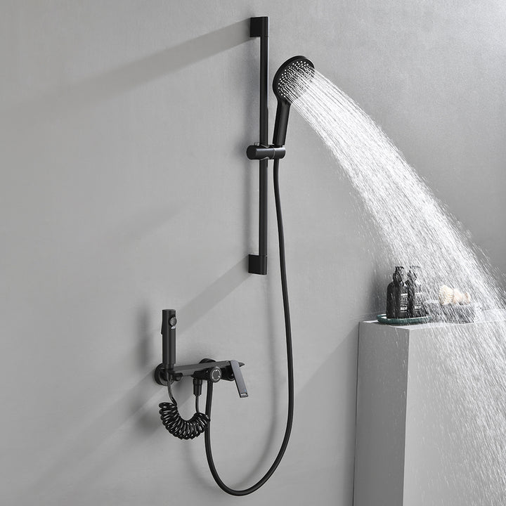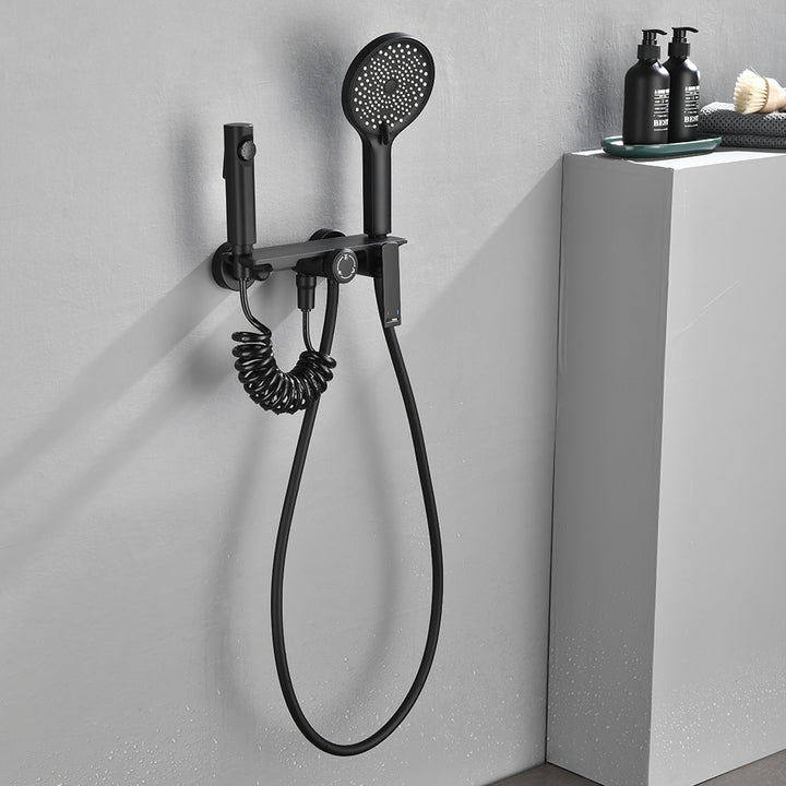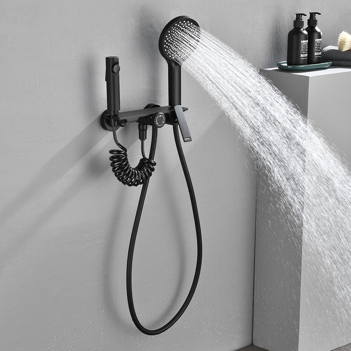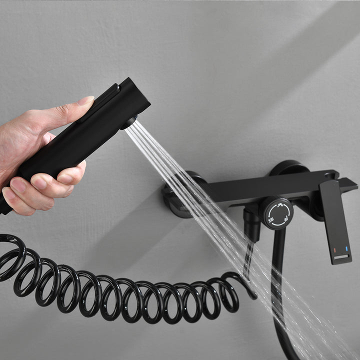 - Adjustable Bracket & Easy Operation:The handheld bracket allows height adjustment and forward/backward tilting for personalized positioning. The main handle turns left for hot water and right for cold, while the rotating diverter provides simple, intuitive switching between water outlets.