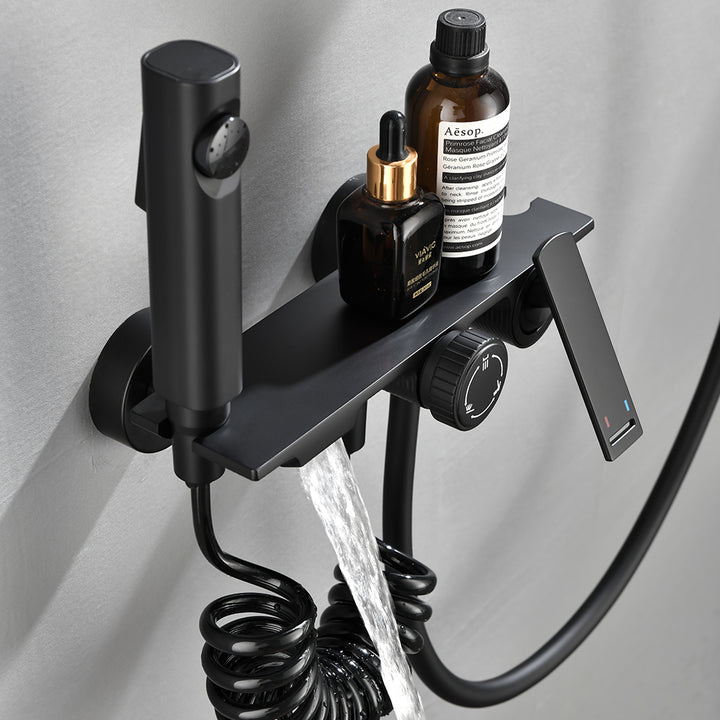 This 3-function tub faucet delivers a versatile and comfortable bathing experience with powerful performance and long-lasting durability. The handheld shower provides a strong 2.4 GPM flow rate for consistent water pressure, while the valve cartridge—tested for 500,000 cycles—ensures smooth operation for years of daily use. Its finish passes Level 10 acidic salt spray testing, offering outstanding corrosion resistance in humid bathroom environments. Designed for flexibility, the adjustable handheld bracket allows both height adjustment and forward/backward tilting for personalized comfort. The handheld shower includes three spray modes—Rain, Pulse, and Mixed—catering to everything from relaxation to efficient rinsing. Easy to operate, the main handle turns left for hot water and right for cold, while the rotating diverter switch lets users seamlessly change between water outlets, making this faucet a reliable and user-friendly upgrade for any modern bathroom.