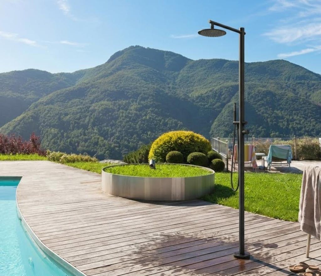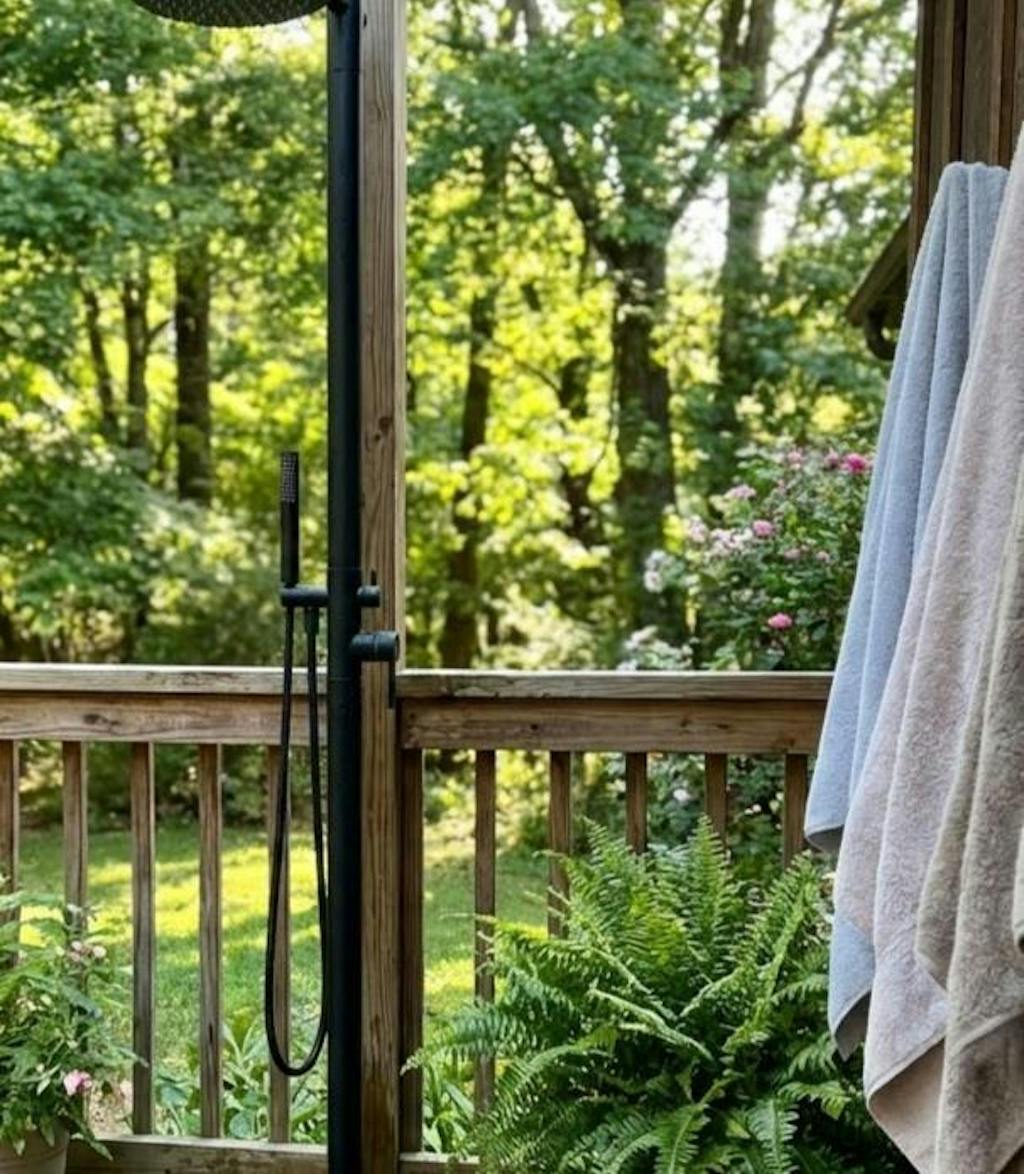 Dual-Function Design:Features both a fixed overhead spray and a handheld sprayer with 1.8GPM flow, delivering flexible rinsing options for poolside refreshment, gardening, or hot summer cool-downs.